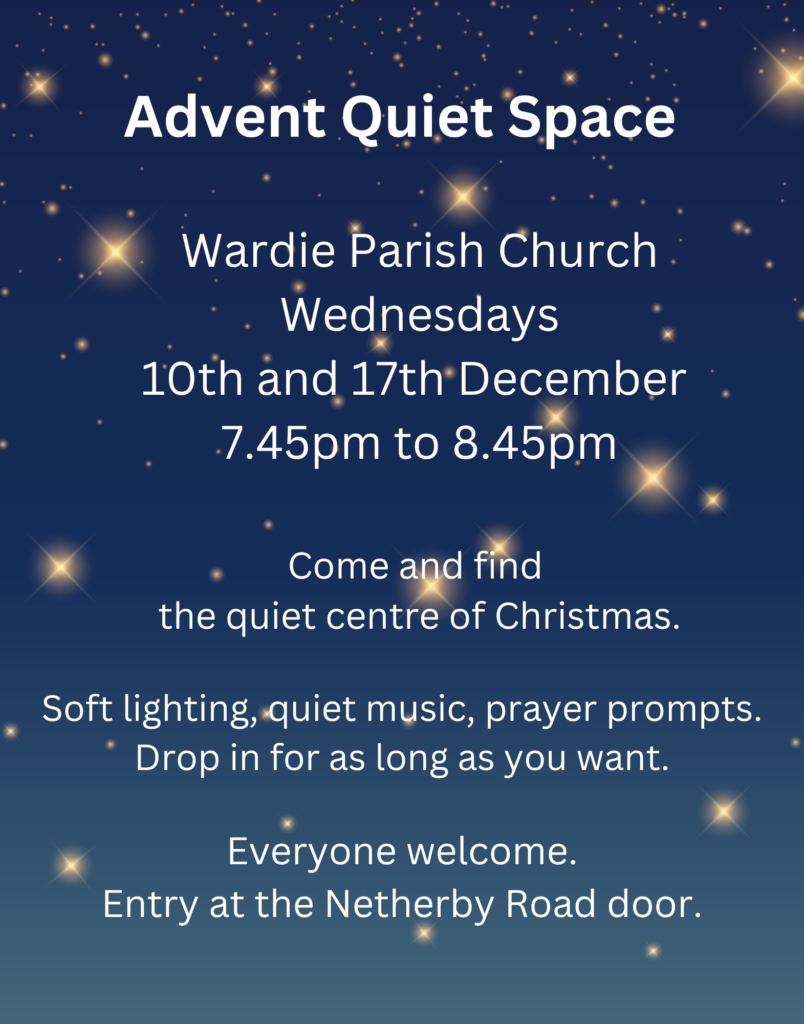 Soft lighting, quiet music and prayer prompts. Come and sit in the sanctuary and enjoy the quiet centre of Christmas.
