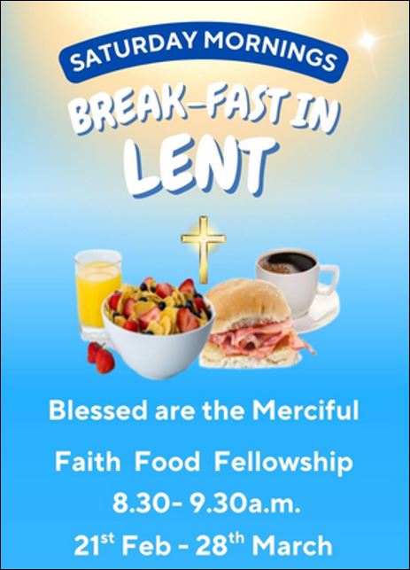 Break-Fast in Lent, Saturday mornings from 21st February NewsEditor11th February 2026 Come along for faith, food and fellowship. All for free – donations are welcome. Ring at the Netherby Road Door to be let in. See you there!